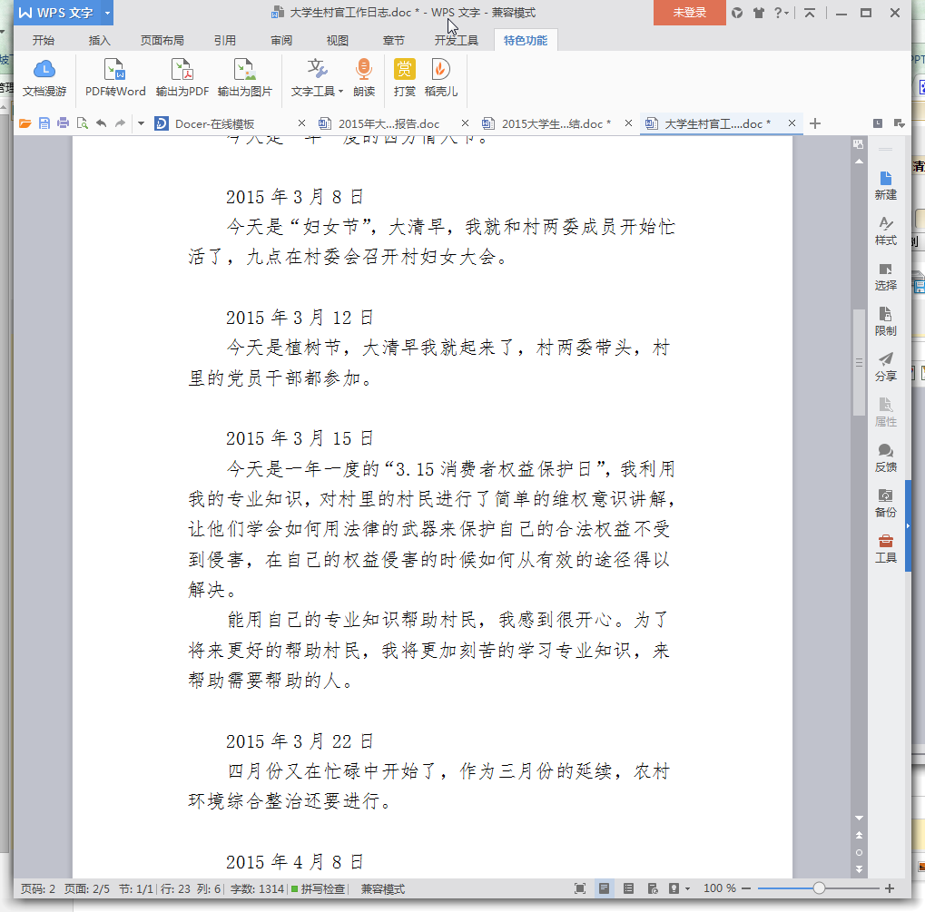2015大学生村官工作日志范本预览