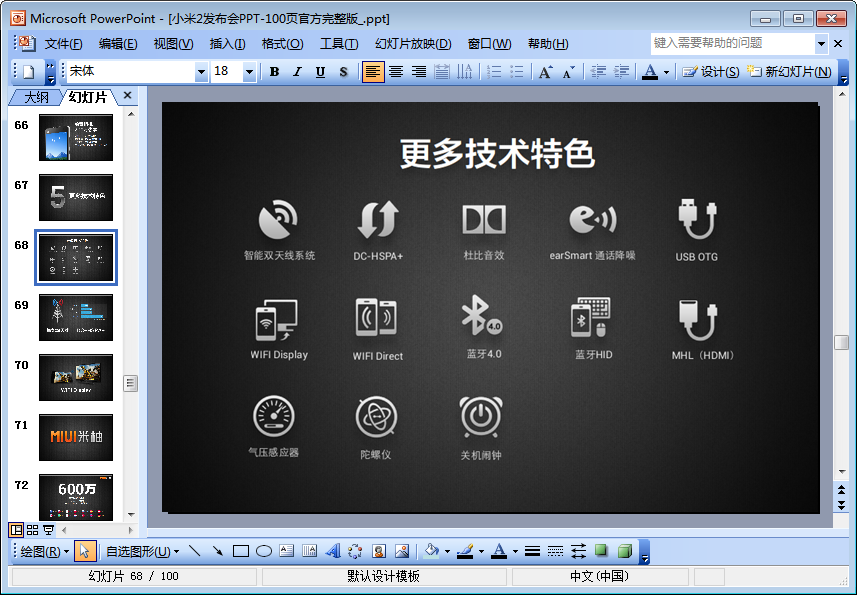 在为“米粉”们整理小米4c发布会ppt的时候,小编无意间看到了这份共由100页组成的官方版小米2发布会ppt,鉴于最近不少朋友在搜集小米发布会ppt,而小米发布会ppt模板更是一直抢手,于是小编决定将这份小米2发布会ppt分享出来以方便大家选取使用,有需要的朋友们快来下载吧!