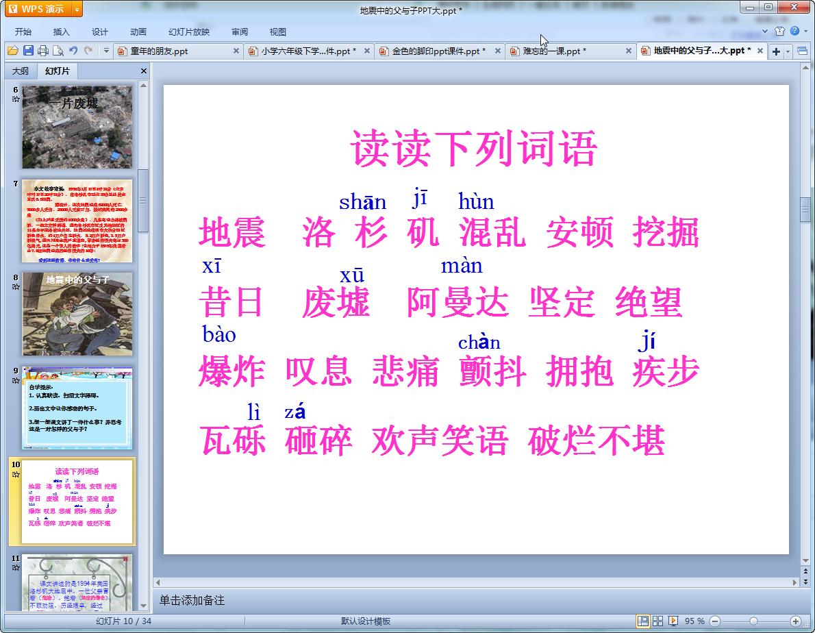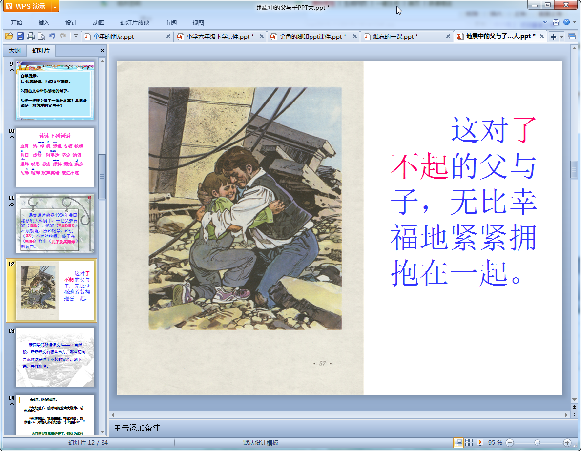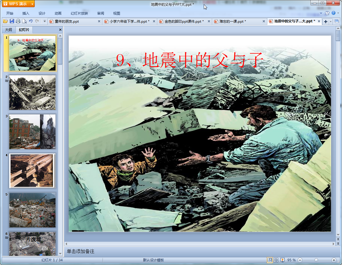 这里给大家带来的是一篇小学语文课文中的地震中的父与子教学课件,课文中讲述了一个父亲一位父亲冒着生命的危险,抱着坚定的信念不顾劝阻救出自己的儿子的故事,该课件共有38页内容十分丰富,对文中父亲的描写十分到位,有兴趣的老师们可以来看看,我们为大家提供了免费的下载!