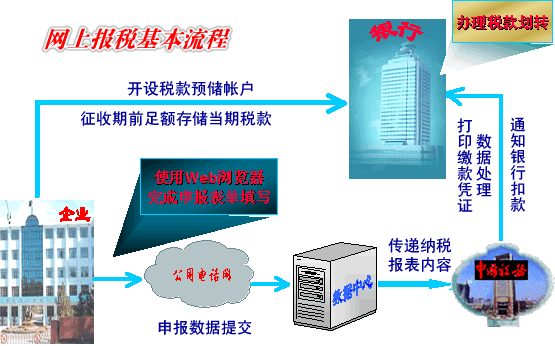 税务机关:本市财税直属分局、各区(县)税务分局受理各自业务管辖范围内纳税户提出的网上申报申请,负责接收和处理网上申报纳税户提交的申报数据,并通过协议扣款的形式直接从指定的税款预储帐户中扣缴税款。