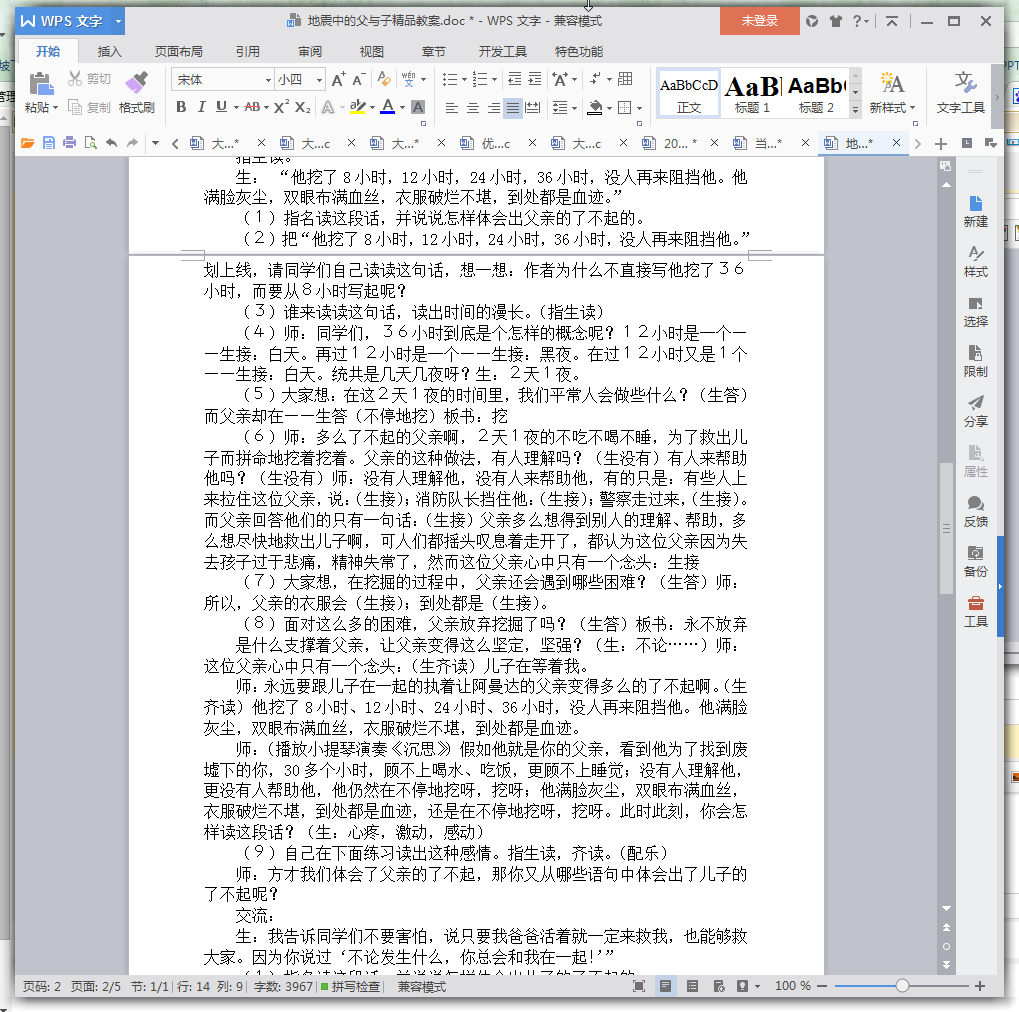 (3)师:别的家长是大哭,然后绝望的离开,而父亲却是埋头接着挖。面对同样的情况,这位父亲的表现为什么能与众不同呢?(引读:儿子在等着我!不论发生什么,我总会跟你在一起!)