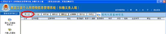 【基础信息采集】:分为国内人员基础信息和外籍人员基础信息,这里以国内人员基础信息为例。点击系统左侧【基础信息采集】内的【国内人员基础信息】按钮,进入到国内人员基础信息界面,这里录入人员信息有两种方法,一种是点击【录入】按钮
