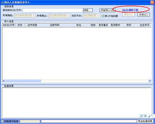 在弹出的国内人员基础信息导入界面的右上角点击Excel模板下载,选择相应的表格进行下载并填写(表格中的红字项为必填项)填写完后将此表格导入即可