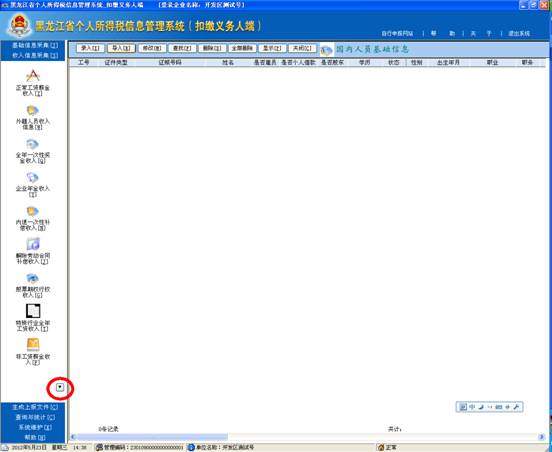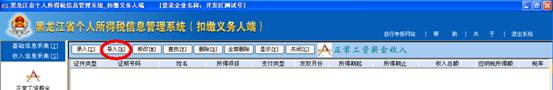 点击系统左侧【收入信息采集】内的【正常工资薪金收入】按钮,进入到正常工资薪金收入界面,这里录入人员收入有三种方法,一种是点击【录入】按钮