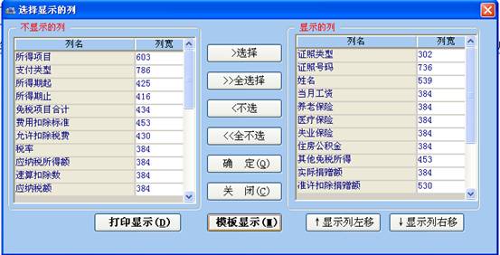 如果想打印的表中显示的列项太多,可以选择【显示】,在此分为显示的列和不显示的列,将想要打印出来的列放在显示的列栏中,将不想打印出来的列放在不显示的列栏中,点确定即可打印出放在显示的列栏中的所有项。
