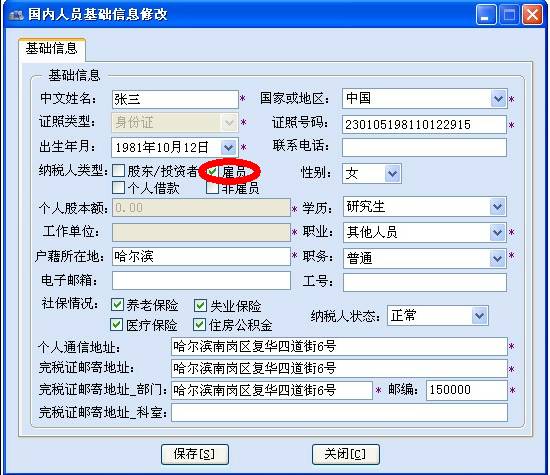 3、在录入员工收入信息前必需确定该员工的基础信息是存在的,如果录入的是工资薪金还需要员工基础信息中“是否雇员”这一项为“是”。