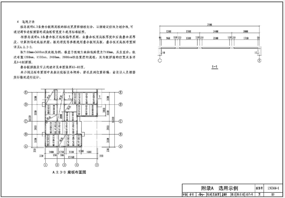 本图集编制了单向受力、双向受力两种情况下叠合板用桁架钢筋混凝土底板,标志宽度类型包括1200mm、1500mm、1800mm、2000mm、2400mm五种;图集给出了各类板型的模板图、配筋图及材料表,并提供相应的构造节点。