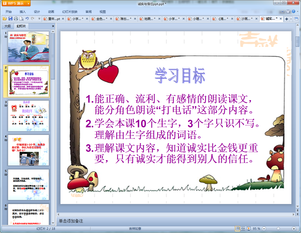 3.理解课文内容,知道诚实比金钱更重要,只有诚实才能得到别人的信任。