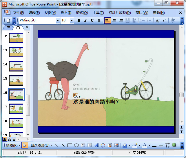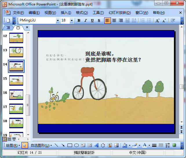 停了一辆脚踏车,小男孩想这是谁的呢,最后看到了,然后又出现了非常多不同功能的脚踏车,非常的丰富,这份这是谁的脚踏车ppt,让孩子们能够发挥更广阔的想象力,非常的生动有趣,欢迎前来东坡下载使用。