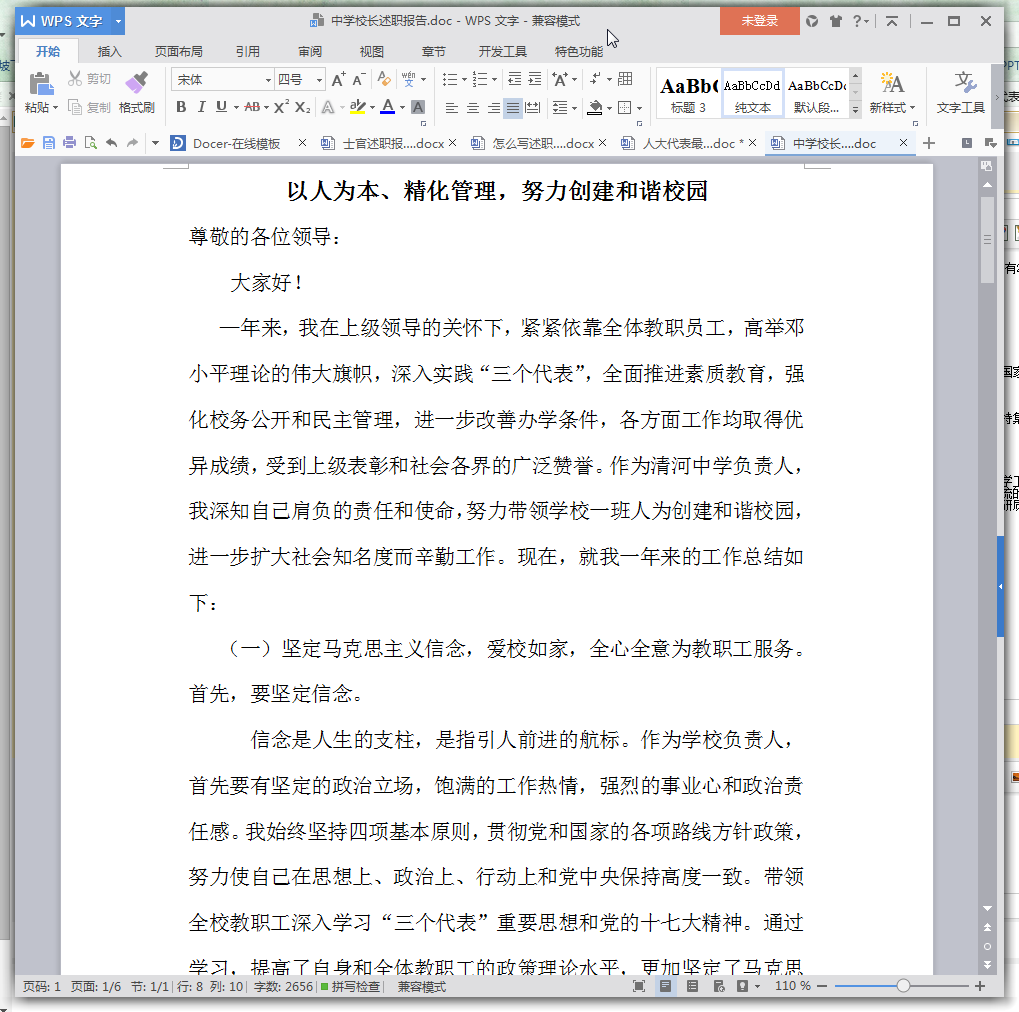学校领导班子团结协作。在多年的教学管理中,我继承历届领导许多好的做法,探索出了一套学校现代教育管理模式,学校每周坚持召开一次全体教师会,对学校重大工作坚持集体订原则,分头做工作,各司其职,各负其责,相互协作,整体配合。在各项工作中,学校班子均能协作成一体,心往一处想、劲往一处使,共同努力把工作做好。