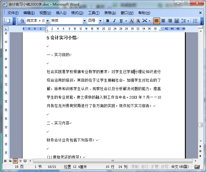 会计实习小结2000字预览