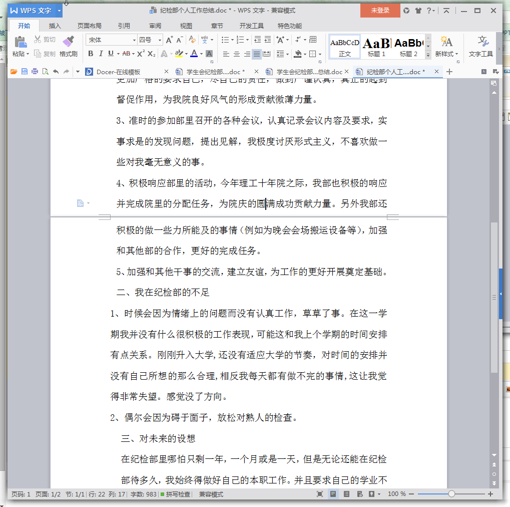 在忙碌的学习和工作中,大学一年级上半学年已经将要结束了。回首一学期以来,我在纪检部学习、工作,在各方面都有了成长,丰富了我的大学生活,也提高了我的个人素养,。也使得自己发现了自己的优点和不足。