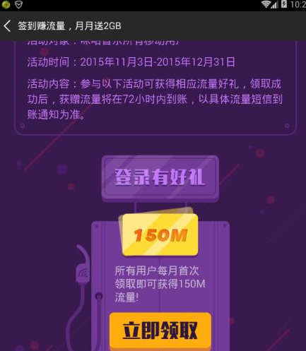 4, 我们看到立即领取 , 这个不需要签到直接领就是了, 150MB