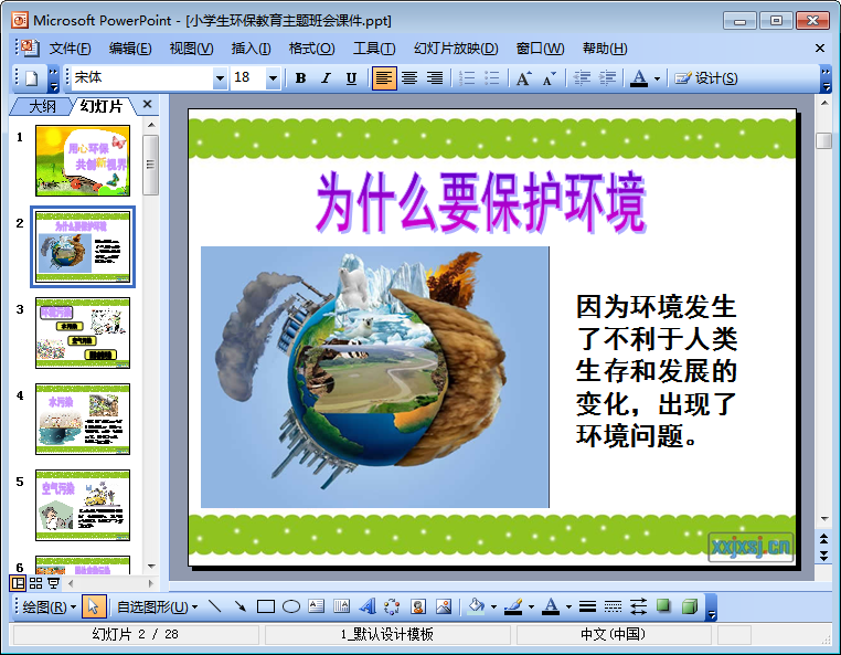 “用心环保,共创新视界”——这是一份由东坡小编最新整理带来的环保主题班会ppt——小学生环保教育主题班会课件。该ppt课件共由28页组成,详细介绍了保护环境的原因及重要性,其中对环境污染和垃圾分类等问题也做了详细的说明和介绍,需要这份环保教育主题班会ppt的朋友们快来下载吧!