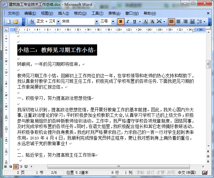 教师见习期工作小结内容摘录