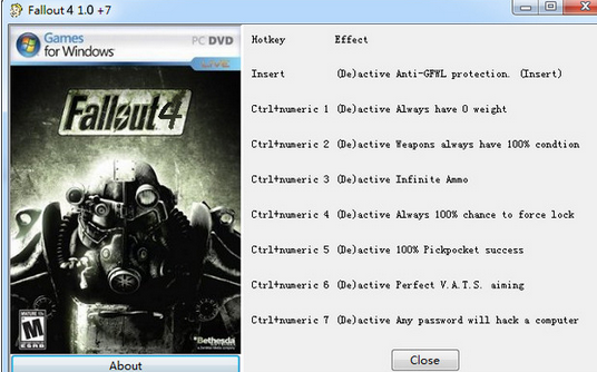 要说小编为什么这么喜欢《辐射4》,这个就是因为有辐射4七项修改器,一款多功能的游戏辅助,让你们在其中获得武器无损、无限弹药、强制开锁等七项功能!