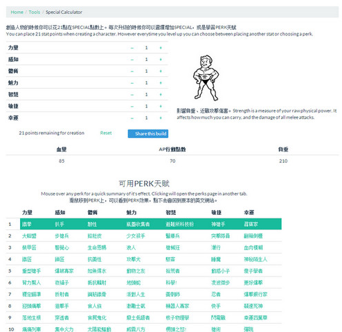 辐射4PERK属性技能加点模拟器加点参考