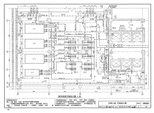 09K601《民用建筑工程暖通空调及动力施工图设计深度图样》主要包括“采暖通风与空气调节工程施工图”和“热能动力工程施工图”及“室外热力管道工程施工图”三部分。本图集收录整理的工程示例基本涵盖了本专业的主要内容,具有较普遍的代表性、通用性。但对于专业性较强的特殊工程项目,应根据其具体内容对本图集进行合理取舍,参考使用