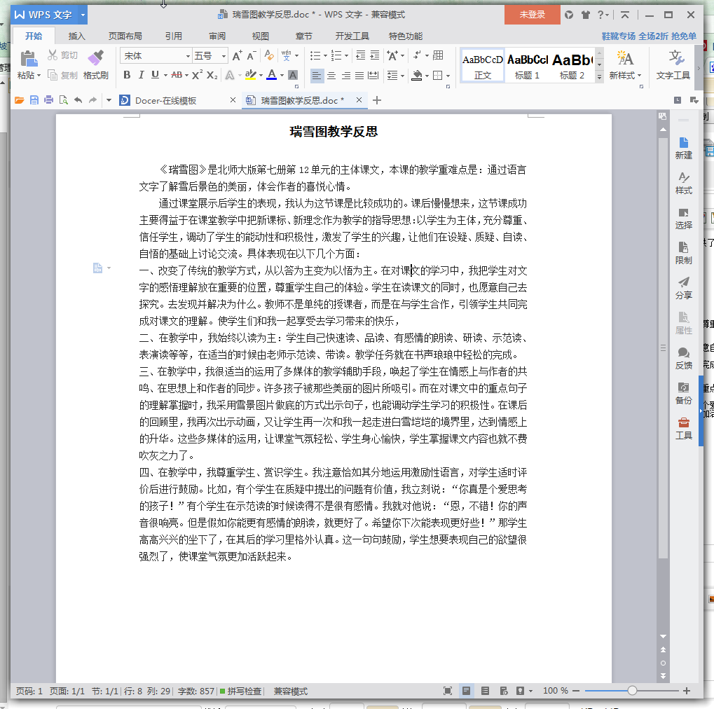 瑞雪图教学反思内容介绍