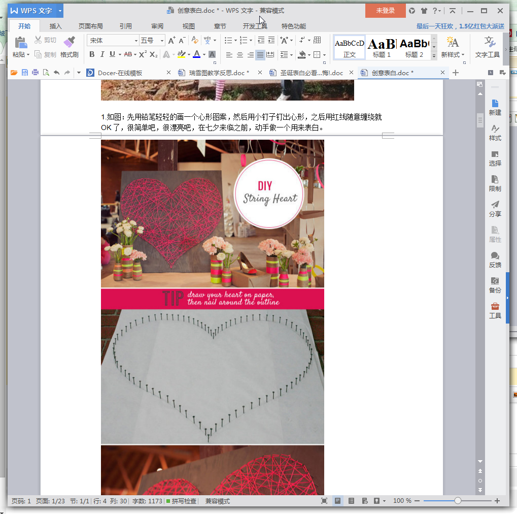 先用铅笔轻轻的画一个心形图案,然后用小钉子钉出心形,之后用红线随意缠绕就OK了,很简单吧,很漂亮吧,在七夕来临之前,动手做一个用来表白。