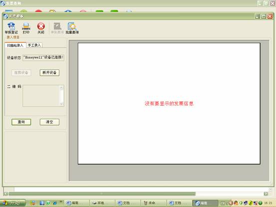 发票查询条件信息的录入有“扫描枪录入”和“手工录入”两种方式: