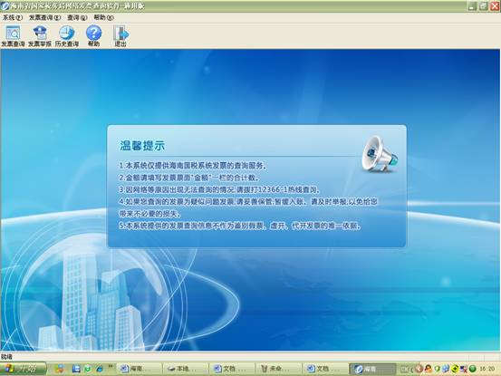 海南省国家税务局网络发票数据查询软件是一款借助国税门户网站平台发票数据查询软件,您可以查询到海南国税系统所有发票领购、开具信息,包括所有现用的海南国税系统发票、已废止的旧版普通发票、 纳税人开具的发票以及税务机关代开的发票的发售、开具的详细信息,您还可以具体查询到发票正常填开、 作废、丢失被盗、流失、失控等发票开具状态。此外,您还可以通过用二维码扫描枪扫描查询、手机查询以及拨打12366纳税服务热线进行查询。