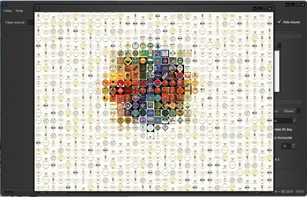 Interactive LiveMosaics! 是一个交互式的应用程序,它可以让你'谈'与你的马赛克。哦,不是真会说话,而是镶嵌将对你的动作作出回应。通过连接的(网络)凸轮的应用程序交互。所有的动作都在瞬间转换为新的镶嵌。它可以刷新全马赛克,或者只是在那里检测到运动的部分。