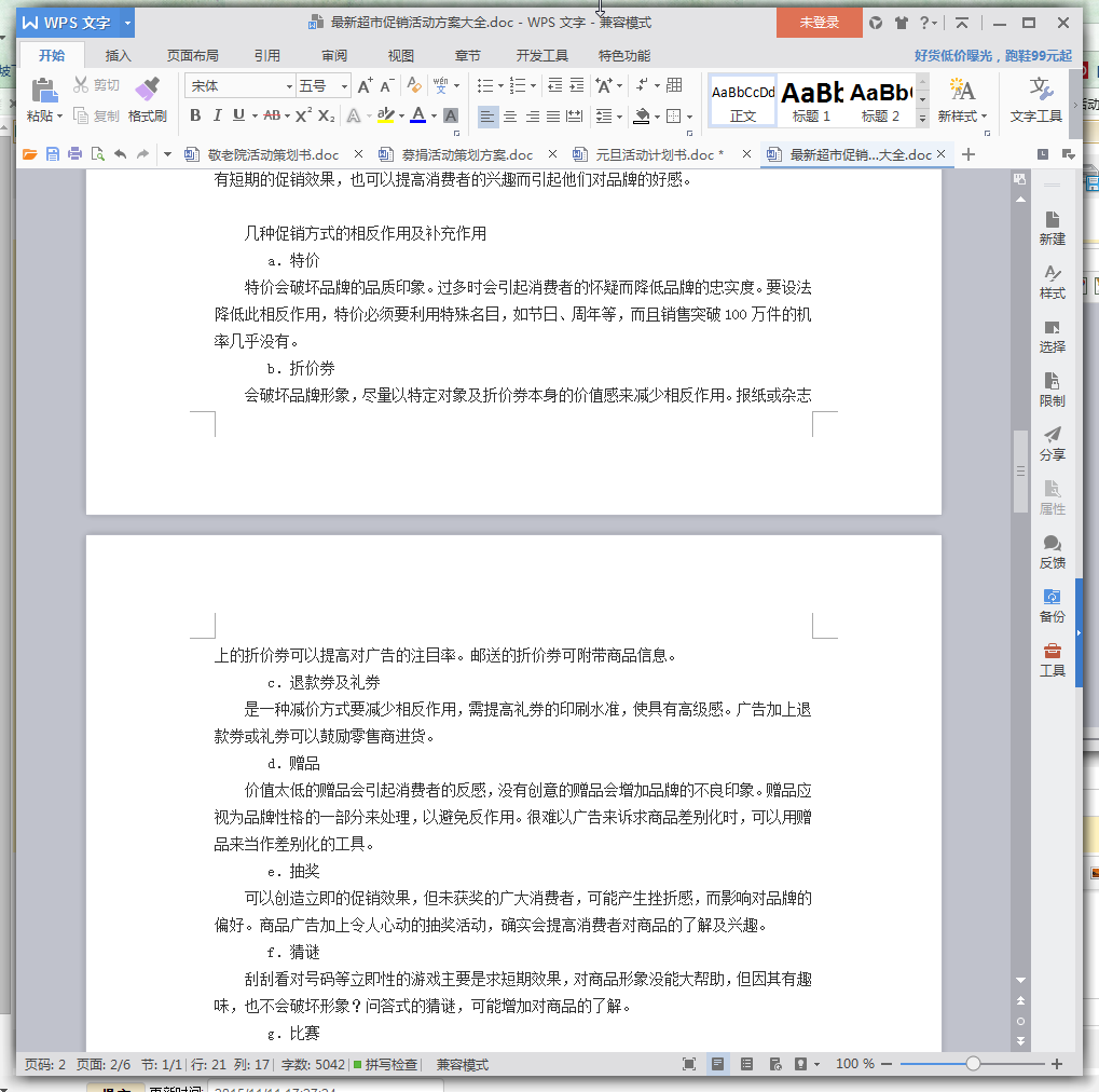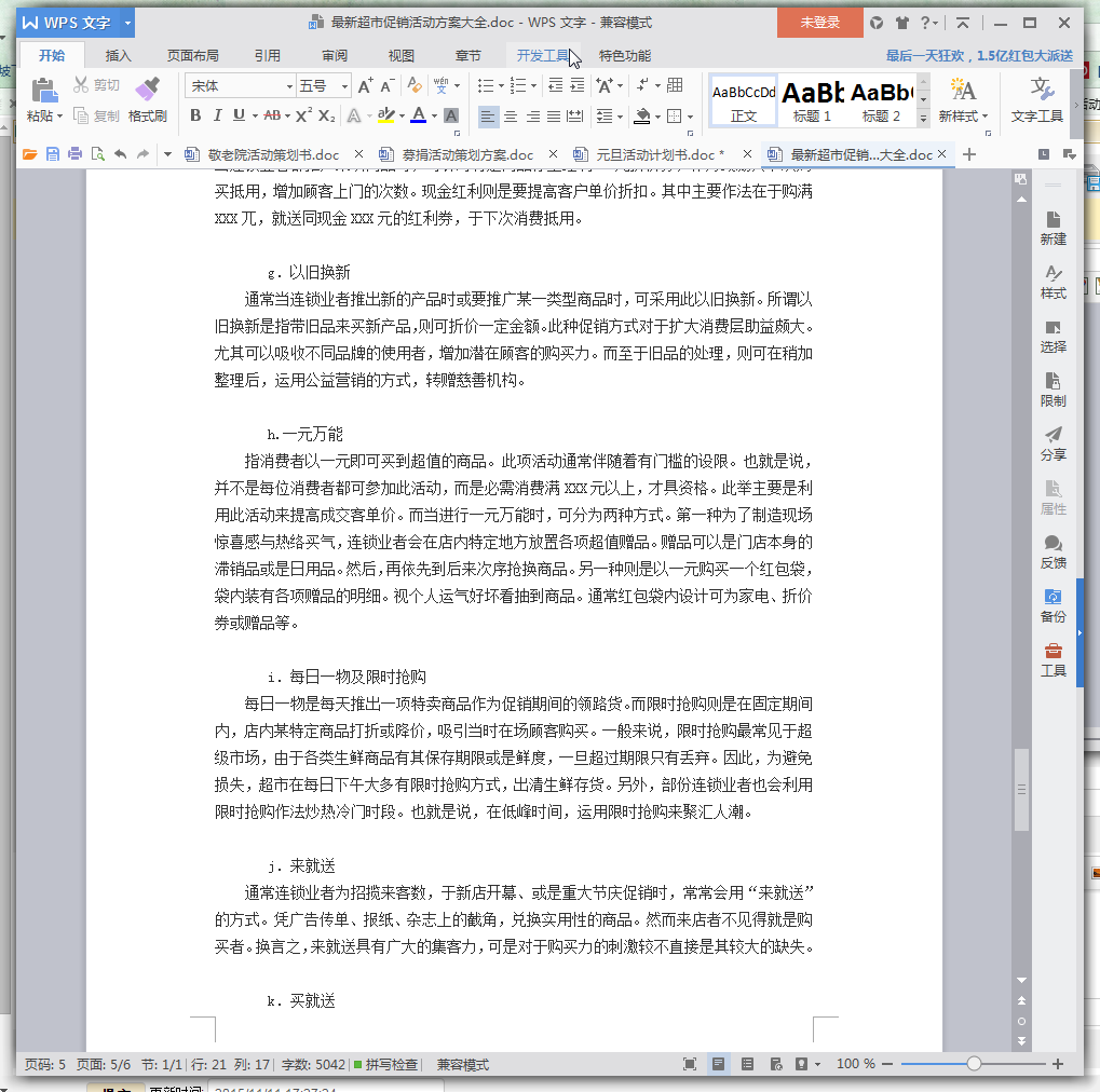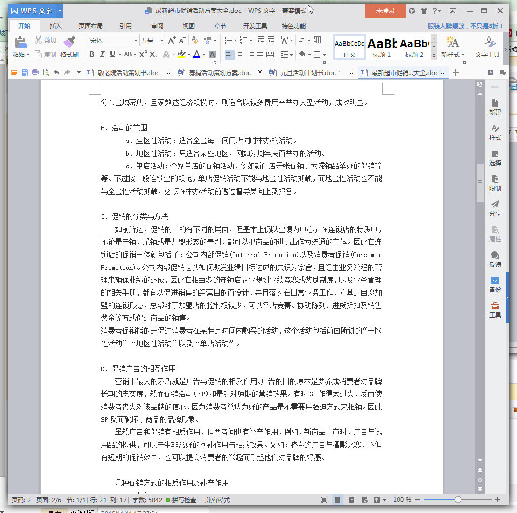 现在各个行业的竞争力度都非常大,人们总是在需要寻求各种方法来保持自己的竞争力,这里给大家推荐了一篇2015超市促销活动方案大全,提供给那些有需要的朋友们,该活动方案大全共有5042个字内容比较丰富,有兴趣的可以来我们东坡免费的下载使用!