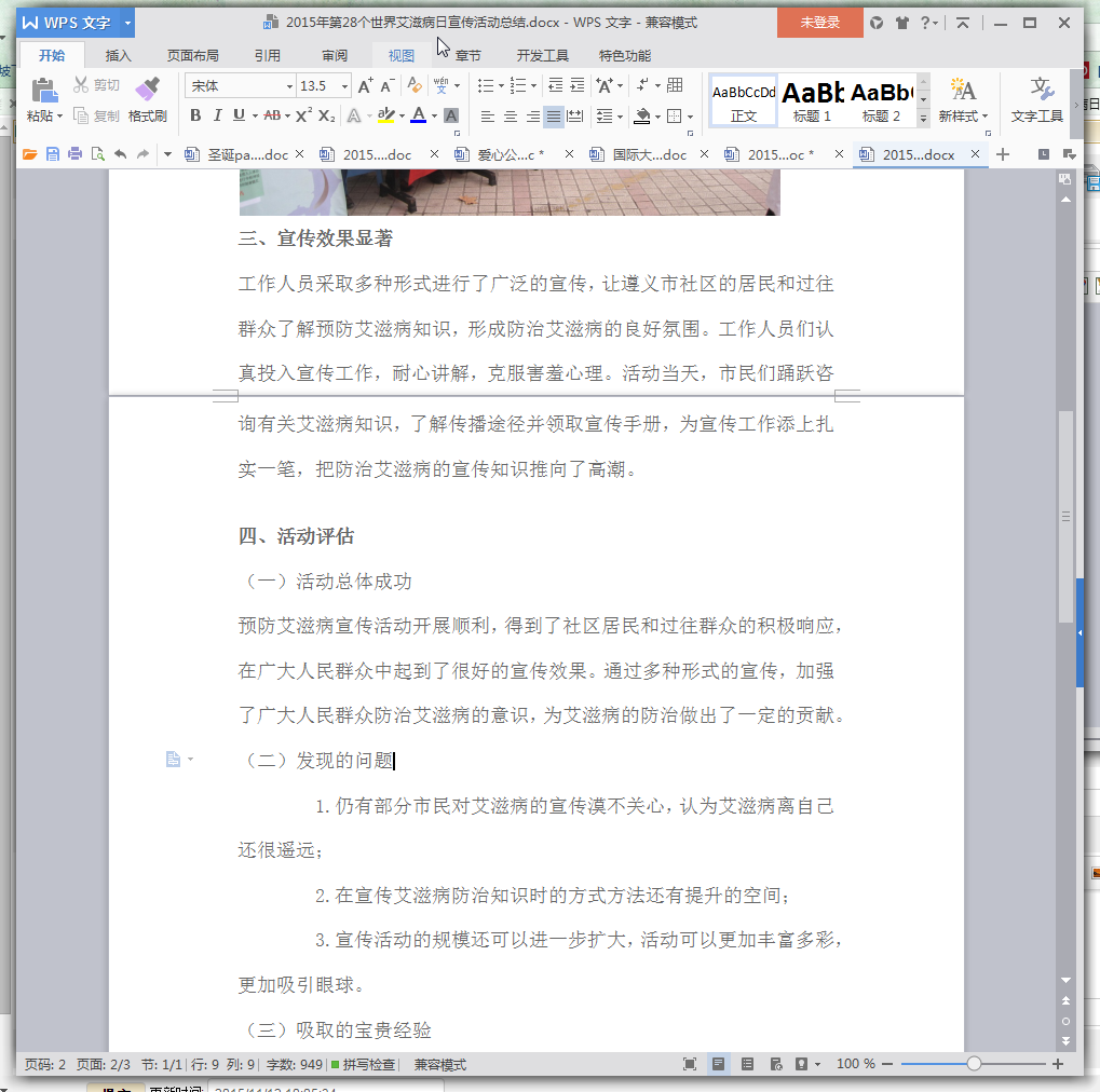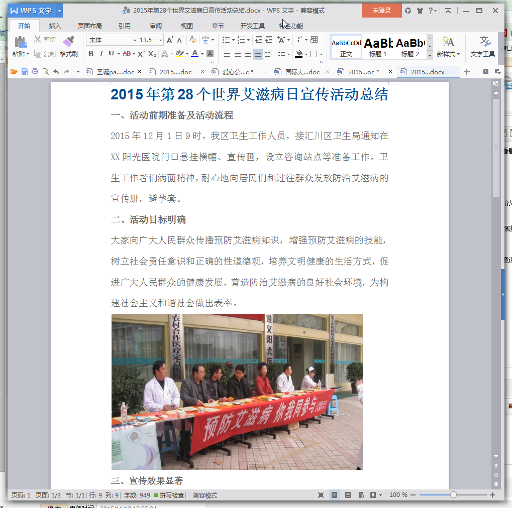 这里给大家带来的是一篇2015世界艾滋病日宣传活动总结(免费下载),里面是对整个宣传活动的总结,活动总结共有949个字内容比较丰富,有需要的朋友们可以来我们东坡看看,本站为大家提供免费的下载服务!