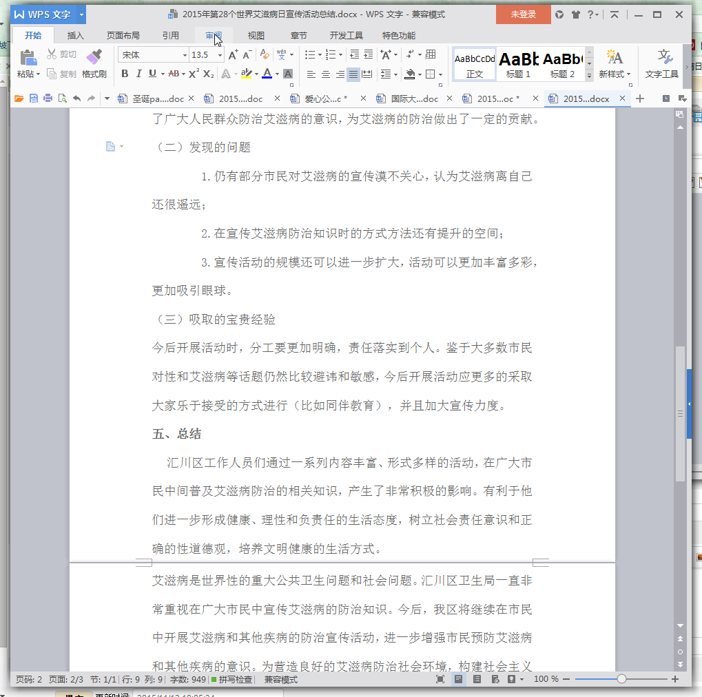 2015世界艾滋病日宣传活动总结(免费下载)内容介绍