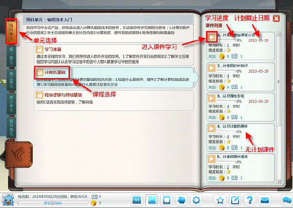 学习的课程,并且可以回顾已经学过的知识以及考试。