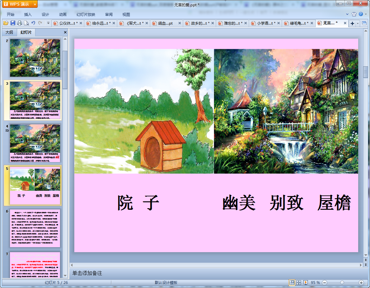 这里是我们东坡下载带来的一篇无言的爱教学课件,该课件共有26页内容非常丰富,对课文中的知识点讲解非常清楚,制作精美深受学生们的喜爱,有需要该课件的老师们可以来我们东坡免费的下载使用!