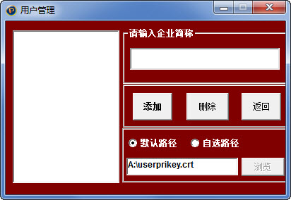 双击网申多用户快捷方式,出现多用软件使用界面,点击下方“用户管理”→放入添加企业的CA数字证书盘→上方输入企业简称→点击“添加”→提示“确认安装…证书”→点击“是”→提示“证书安装成功”→点击“确定”,窗口左侧看到企业名称,企业添加成功。