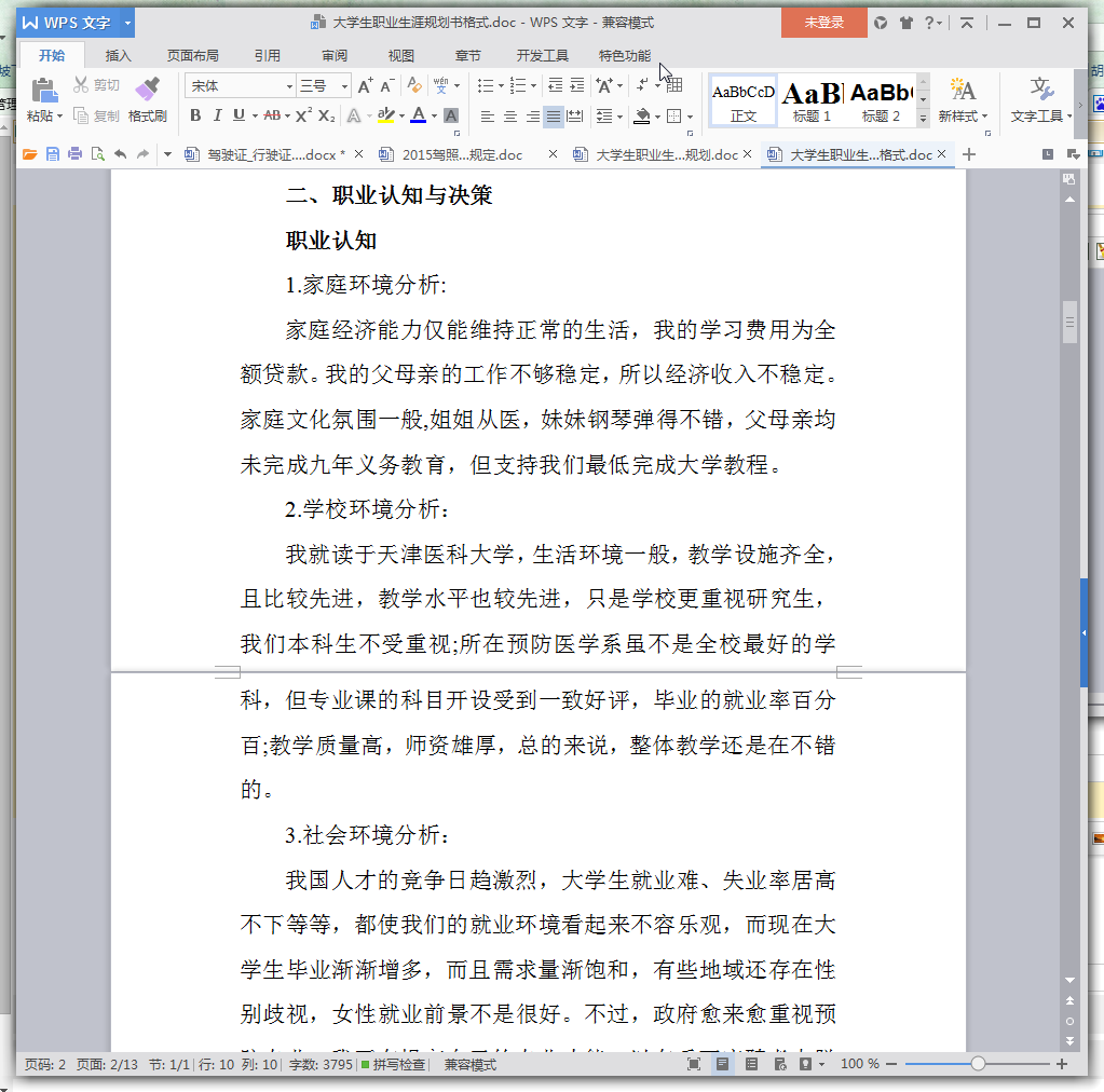 家庭经济能力仅能维持正常的生活,我的学习费用为全额贷款。我的父母亲的工作不够稳定,所以经济收入不稳定。家庭文化氛围一般,姐姐从医,妹妹钢琴弹得不错,父母亲均未完成九年义务教育,但支持我们最低完成大学教程。