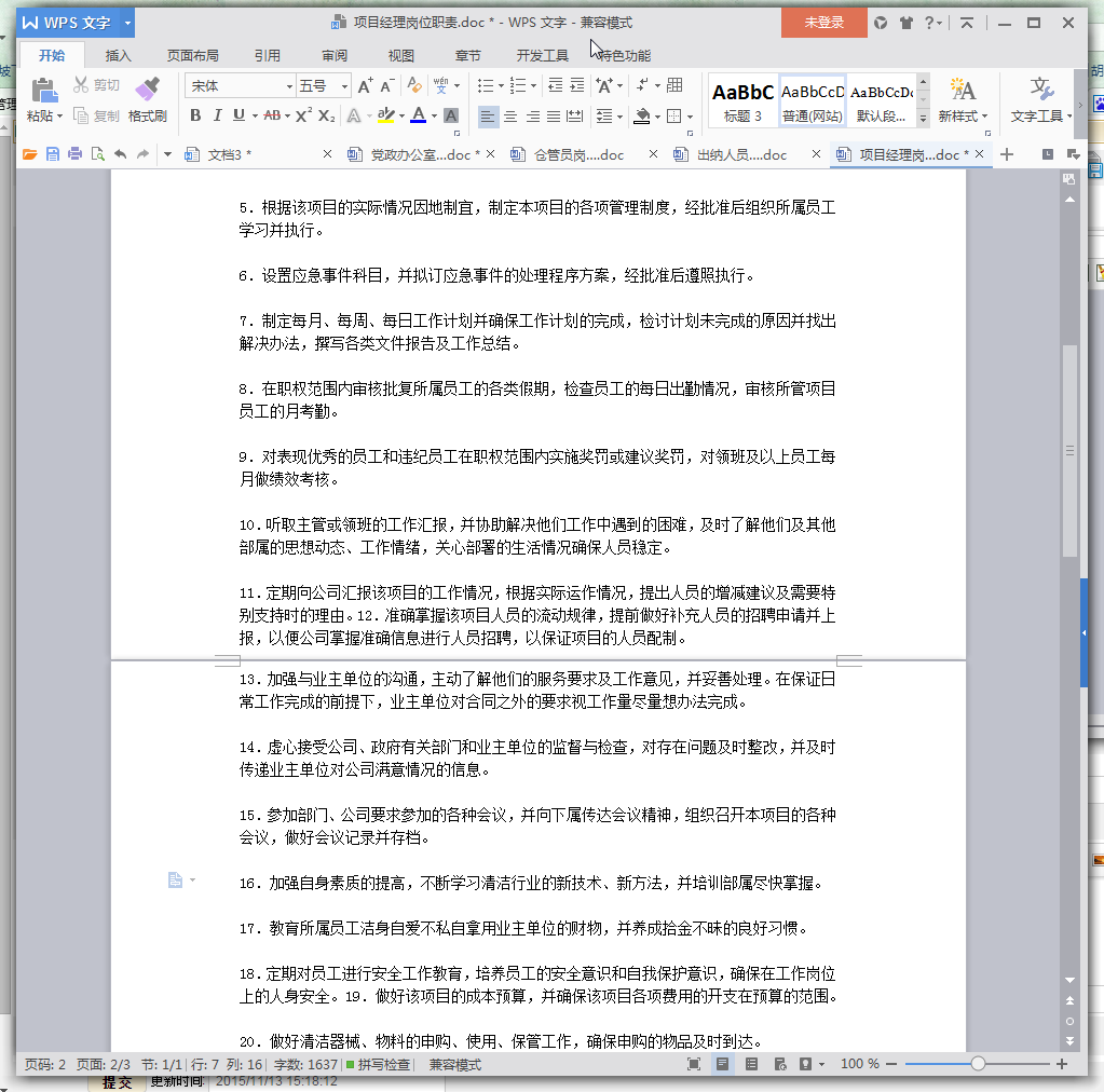 4.认真考察所管项目的工作区域、工作难度、工作时段,根据实际情况提出合理的定岗定员建议,经公司批准后并严格执行。