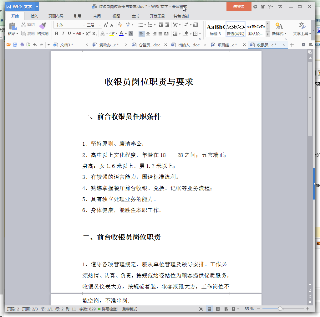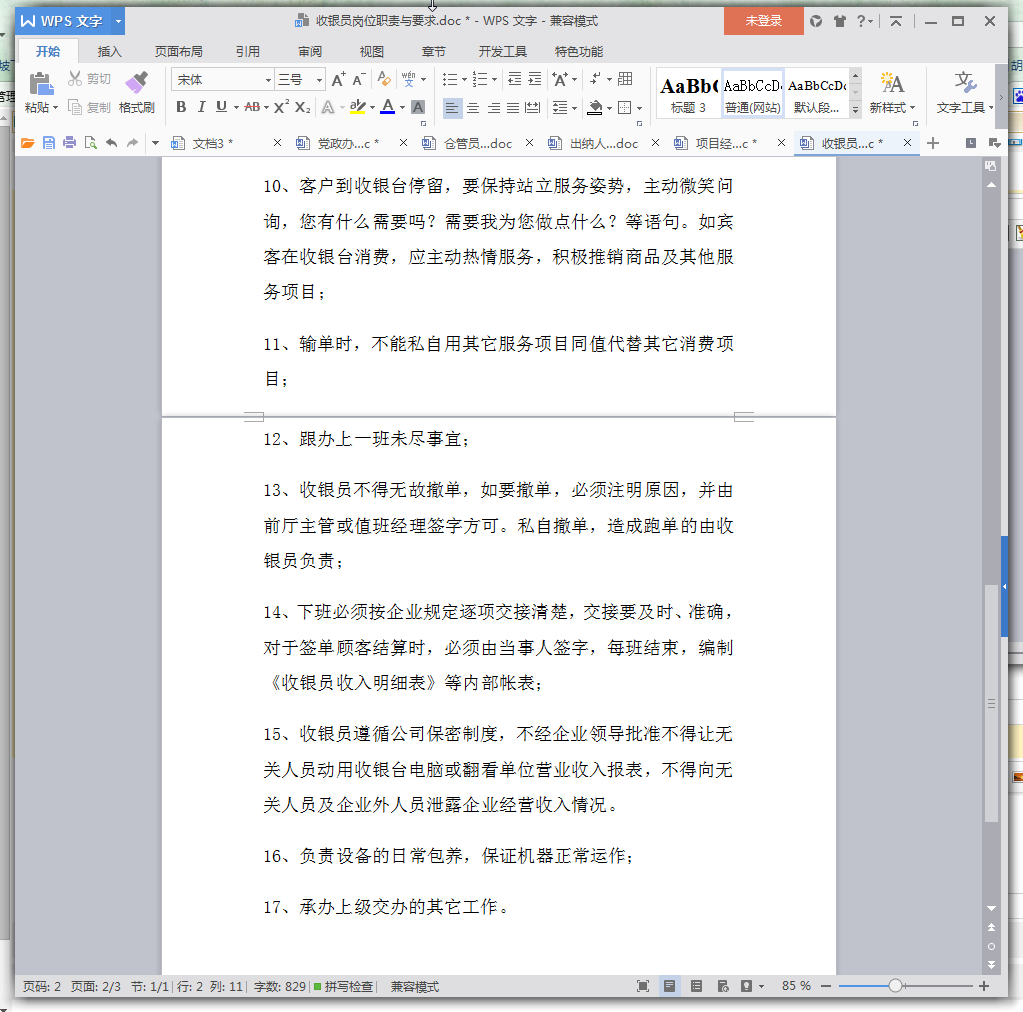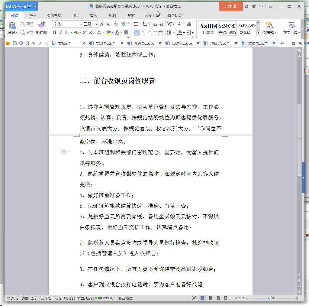 1、遵守各项管理规定,服从单位管理及领导安排。工作必须热情、认真、负责,按规范站姿站位为顾客提供优质服务,收银员仪表大方,按规范着装,妆容淡雅大方,工作岗位不能空岗,不准串岗;