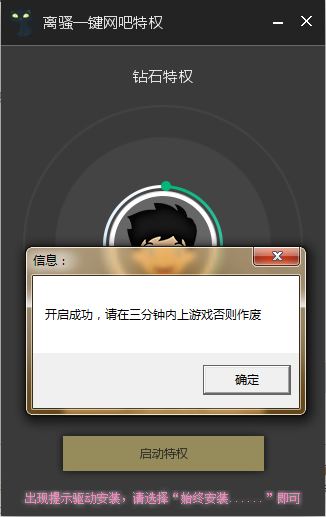如图:成功启动钻石网吧特权,三分钟内上游戏即可,否则无效!