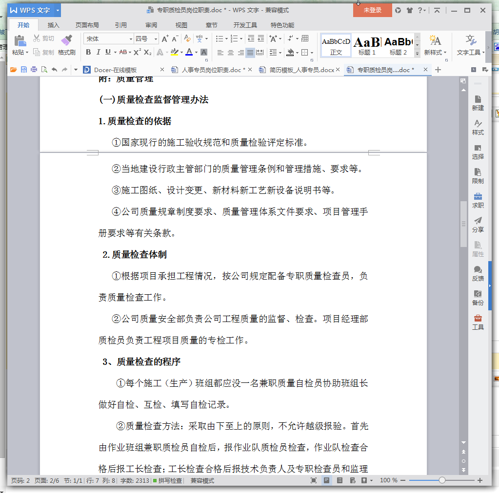 1、在项目经理、执行经理和技术负责人的领导下,宣传、贯彻、执行国家和行业质量政策、法规、规范、标准和上级有关质量的规定。