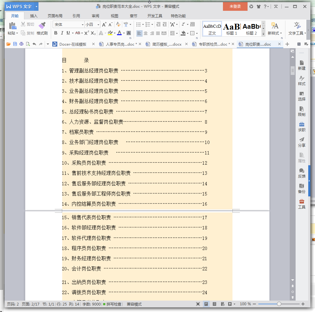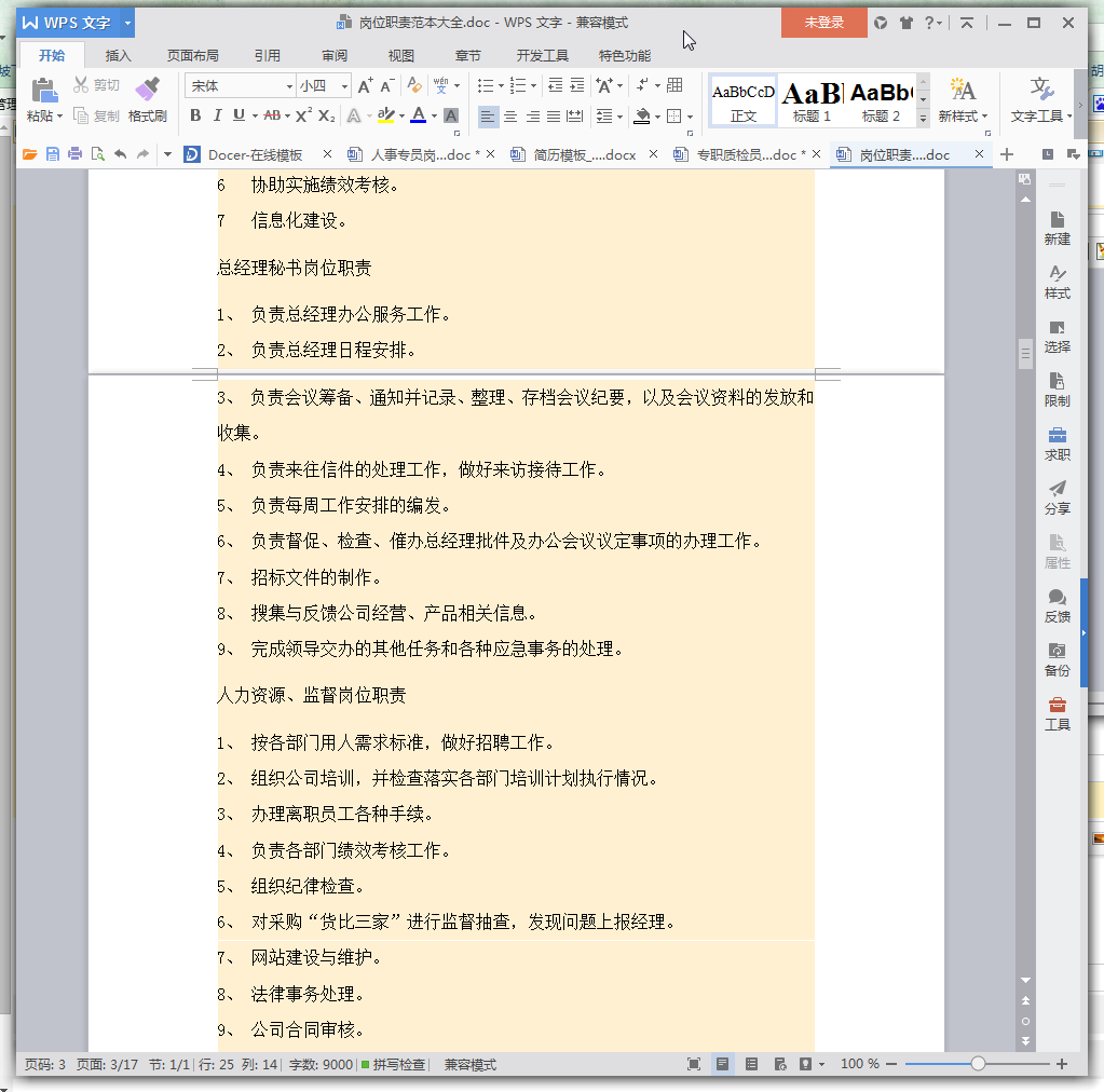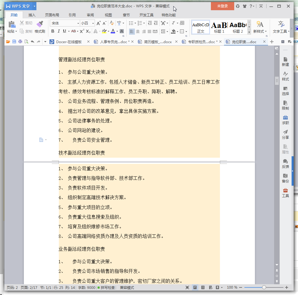 岗位职责范本大全(免费版)内容介绍