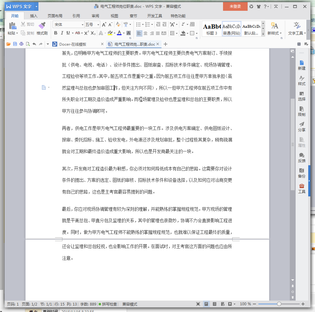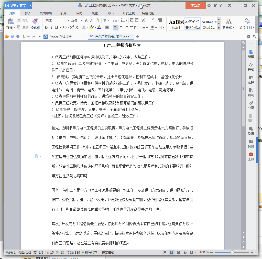 这是一篇电气工程师岗位职责说明书word范本,里面有对电气工程师这个岗位的介绍以及工作中需要注意的地方,整篇word共有889个字内容介绍比较详细有需要的朋友们可以来这边免费的下载使用!