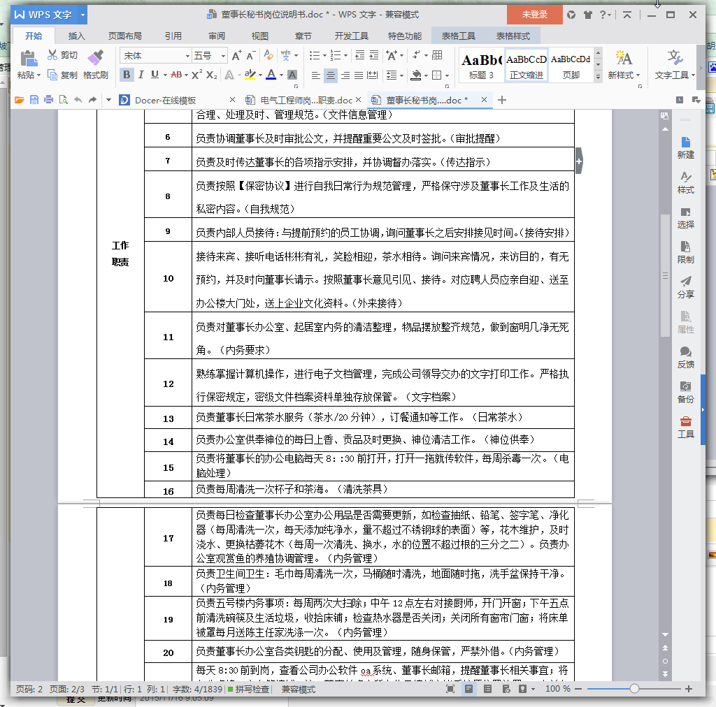 这里给大家带来的是一篇由东坡下载整理编辑的董事长秘书工作职责说明书,采用表格的形式详细的介绍了董事长秘书的工作性质与内容,以及工作上面需要注意的地方,有需要的朋友们可以来我们这边免费下载使用!