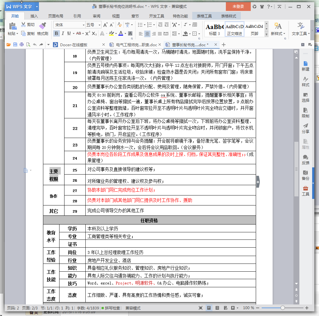 3.负责按照【保密协议】进行自我日常行为规范管理,严格保守涉及董事长工作及生活的私密内容。(自我规范)