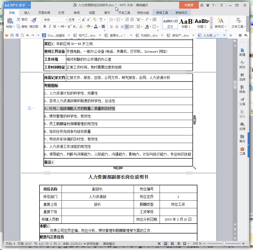 这是由东坡下载编辑整理的人力资源部岗位职责说明书word,该岗位职责说明书共有9111个字内容非常丰富,全方位的介绍了人力资源部的工作情况。有需要的朋友可以来我们这边免费的下载使用!