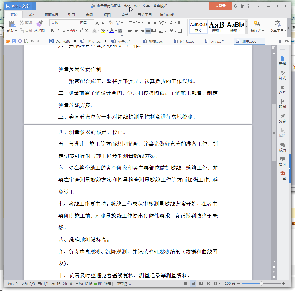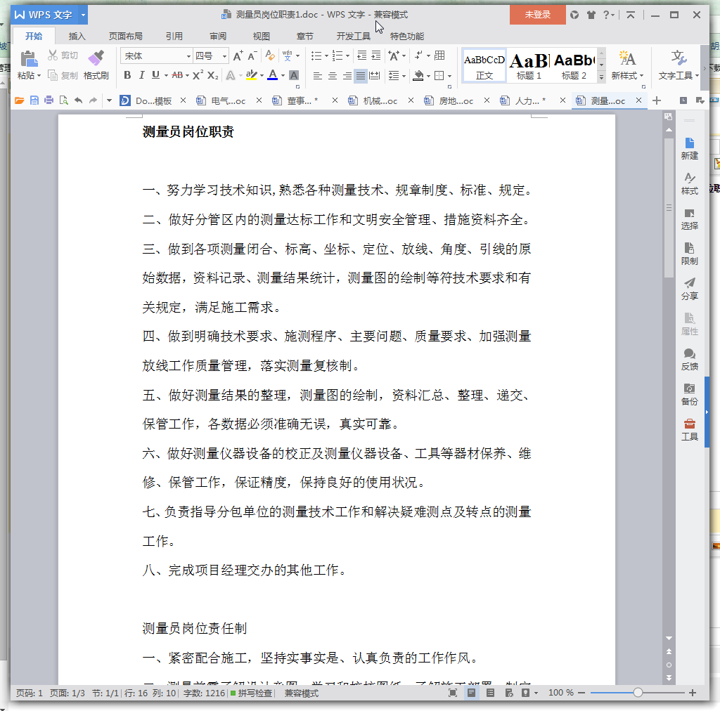 测量员岗位责任制