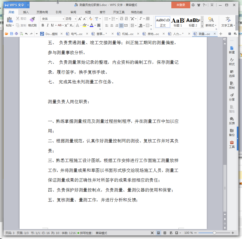 测量员岗位职责范本预览