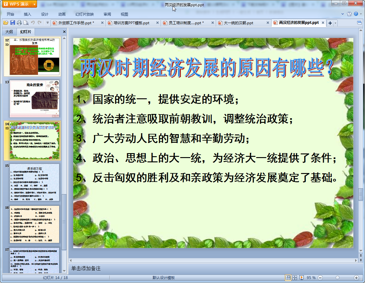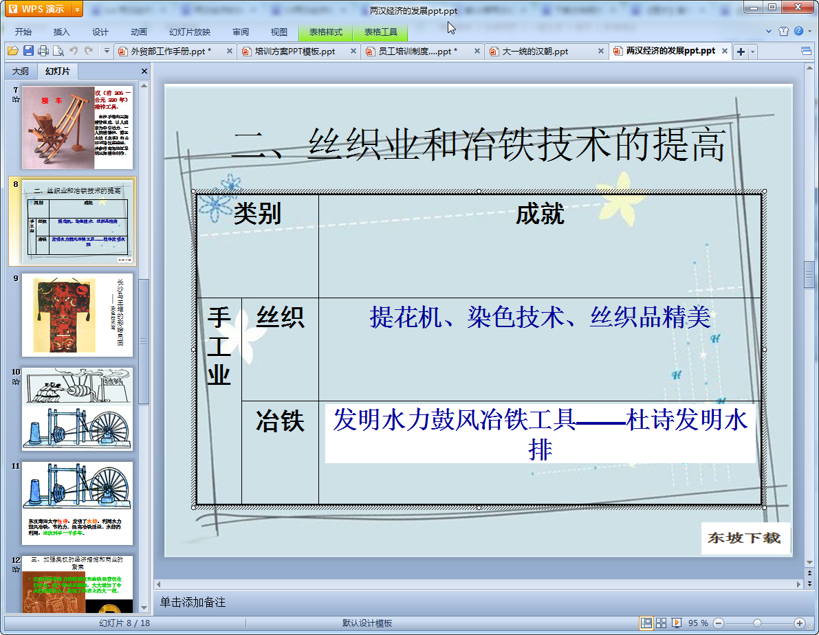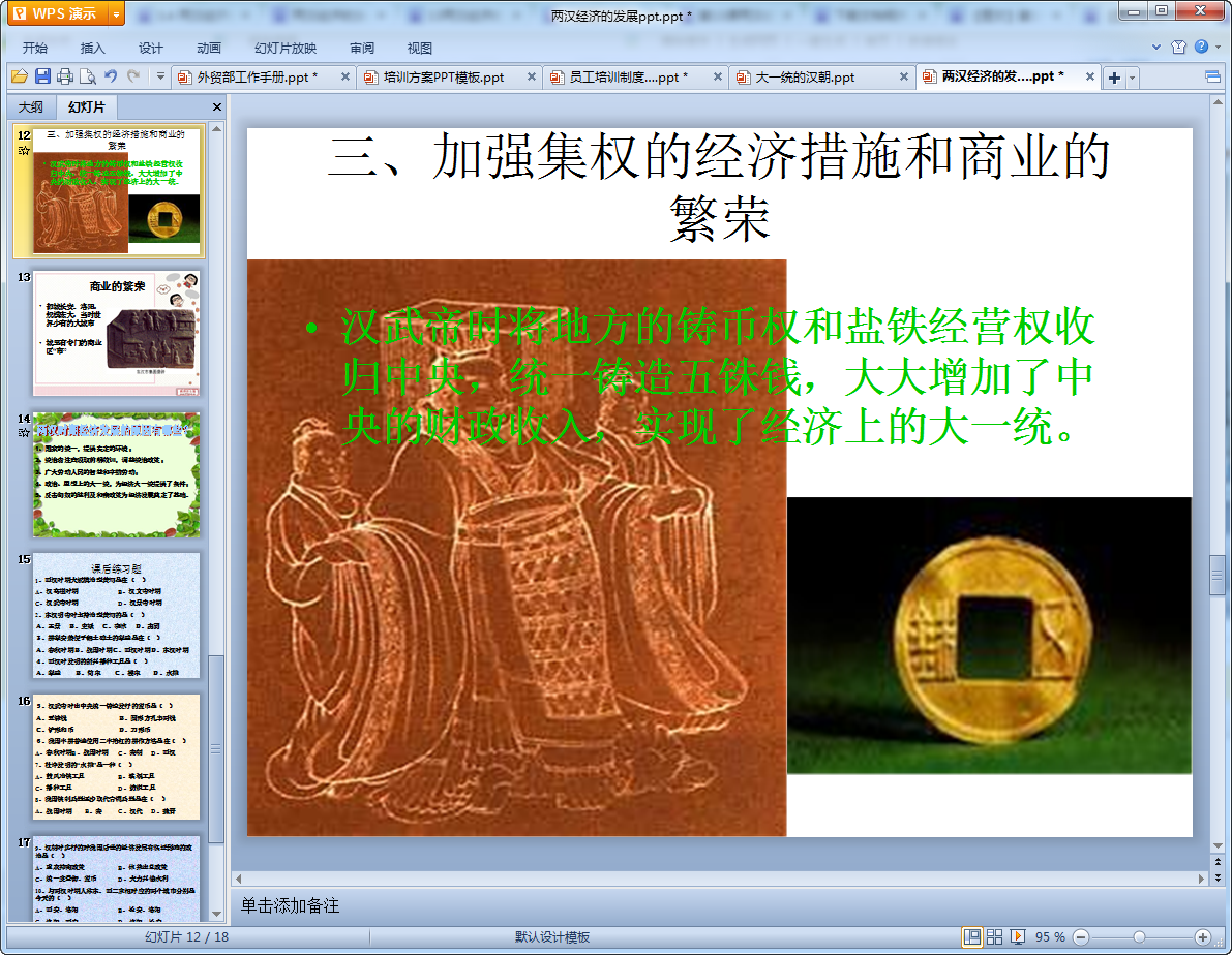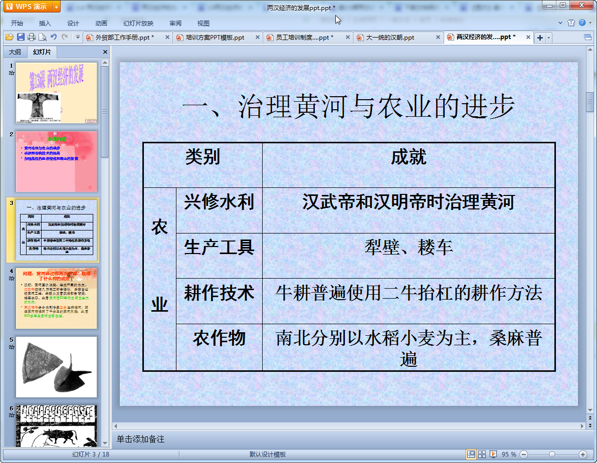 这是一篇人教版七年级上历史课件两汉经济的发展ppt,该课件共有18页内容比较丰富精细的内容制作深受广大老师们的喜欢,有需要该课件教学的朋友可以直接来我们东坡免费下载使用!