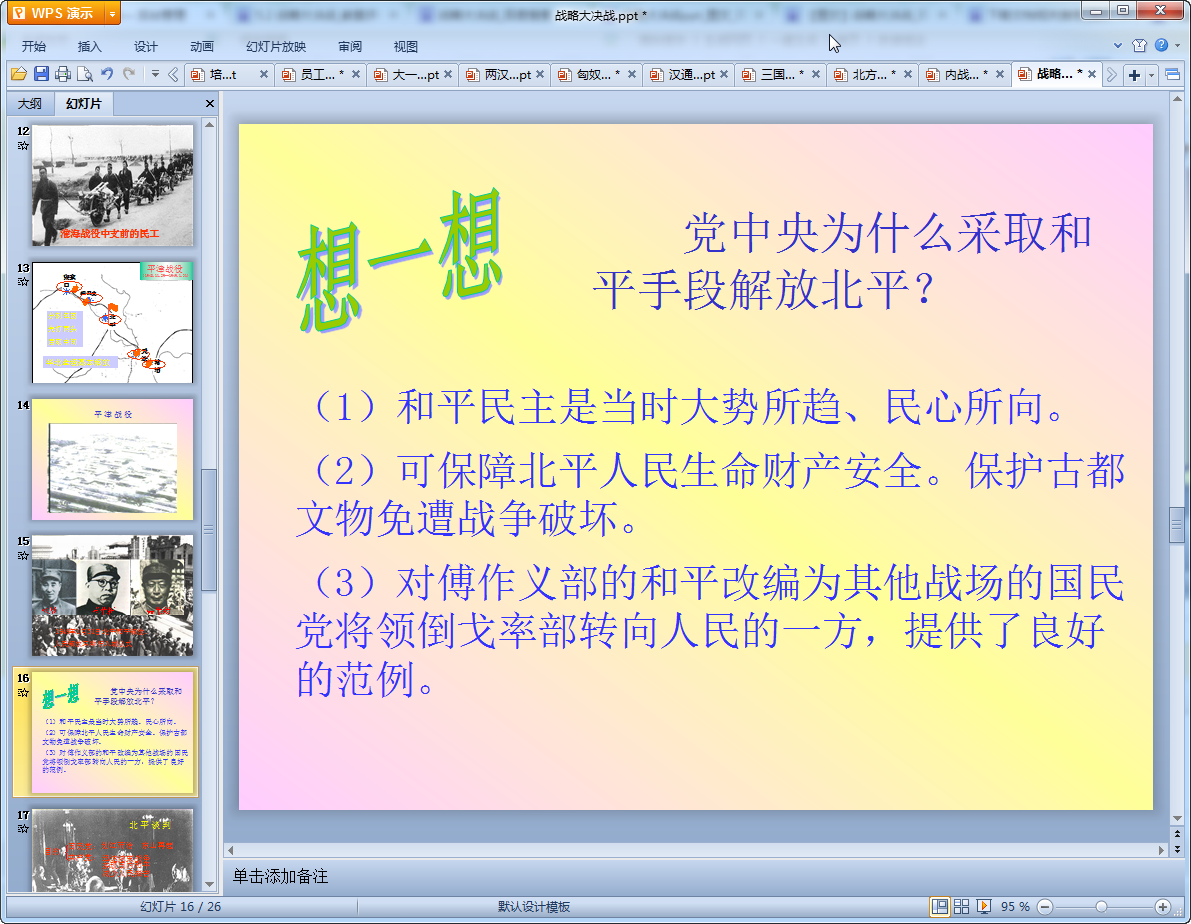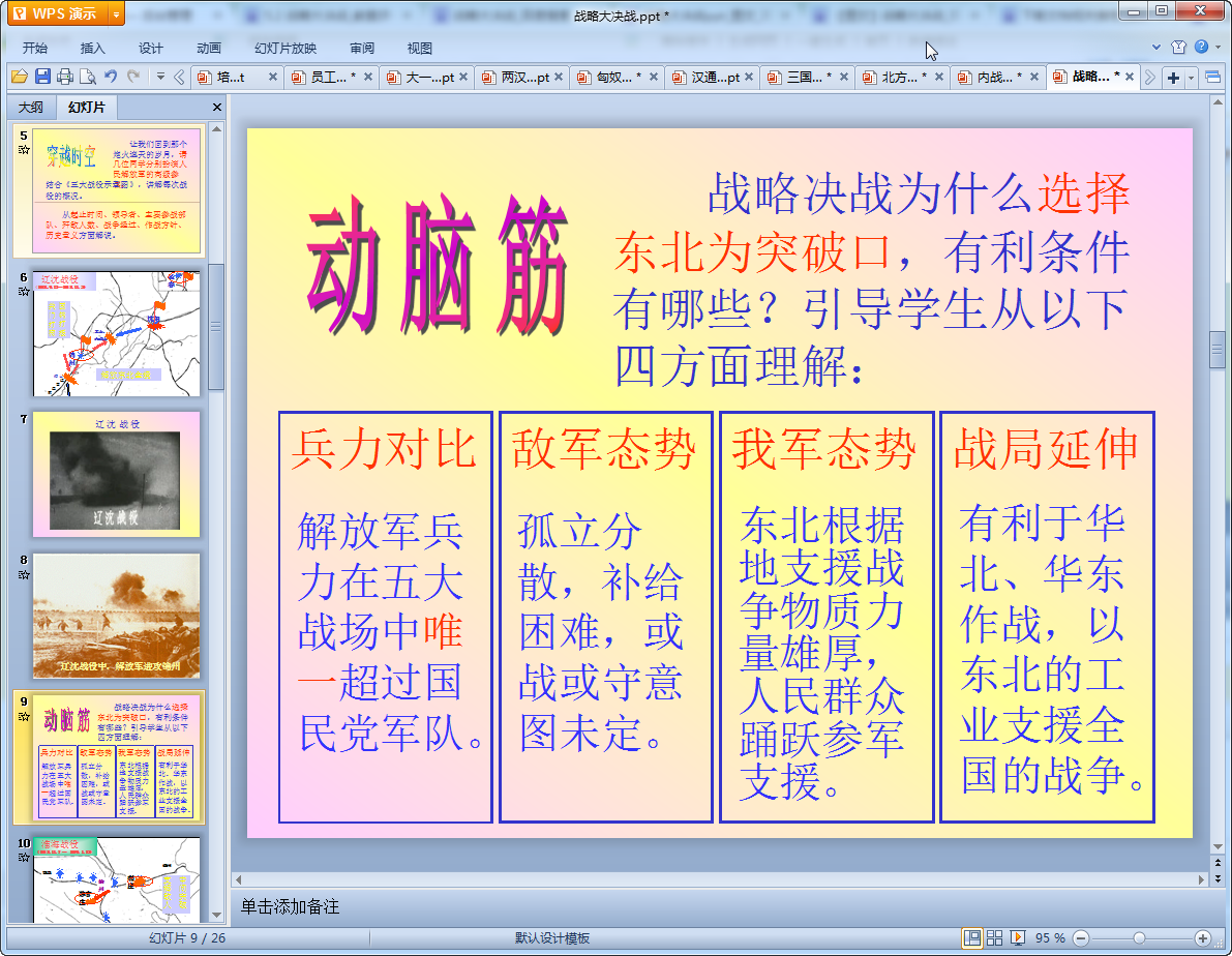 这是初中历史战略大决战ppt课件,课件共有26页内容制作十分丰富精美,对课文中的重难点讲解详细,非常不错的教学课件适合需要该课件的老师们和想预习该课文的同学们,有兴趣的可以来我们东坡免费下载使用!