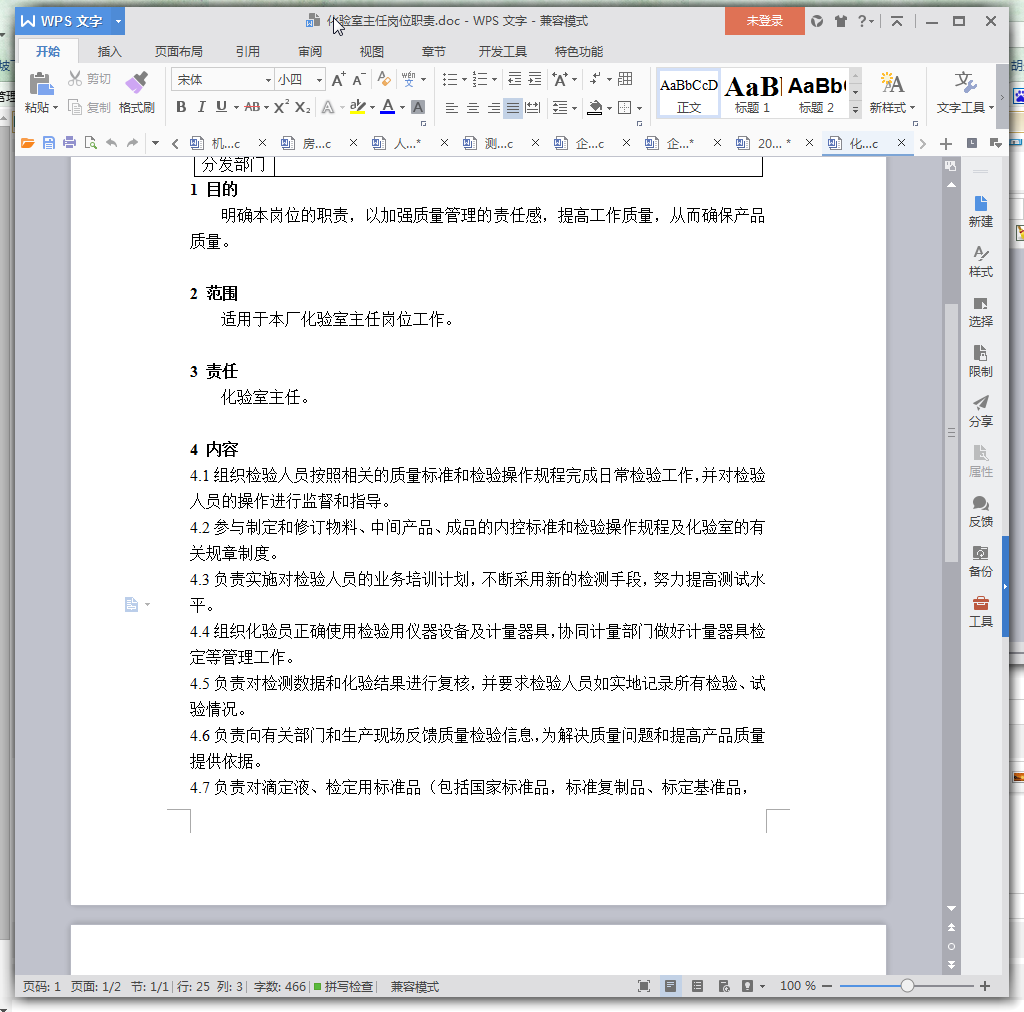 这是我们东坡下载编辑整理的化验室主任岗位职责(免费版),想对这方面职业有所了解的朋友们可以来这边看看,该word全篇共有466个字对该职业的工作内容以及注意事项都有所介绍,有兴趣的朋友快来下载这篇化验室主任岗位说明书吧!