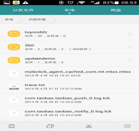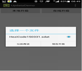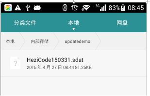 先运行UpdataDemo.apk软件包安装软件,安装完成软件后打开软件,在文件管理器内部存储中会自动生成一个名字为updatademo的文件夹