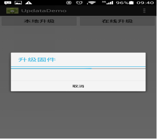 打开UpdataDemo软件,点击本地升级,选择固件文件后点击现在升级